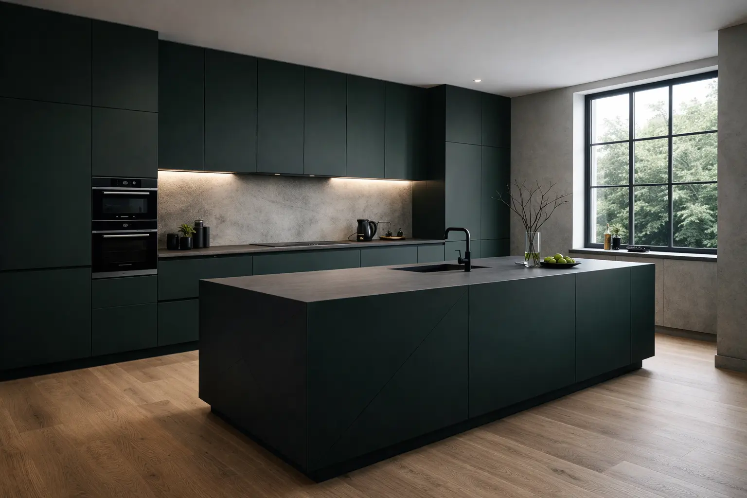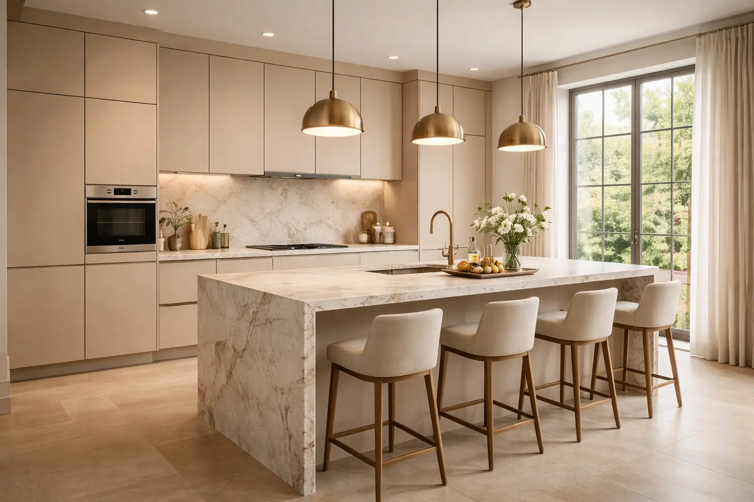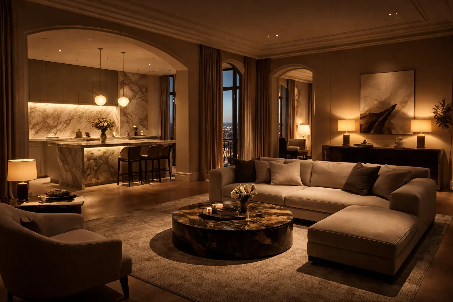 A seamless blend of function and elegance, featuring clean cabinetry, concealed lighting, and refined material transitions.