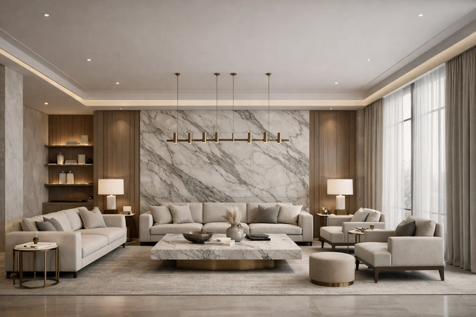 Cmilano provides complete luxury interior design and home renovation services including space planning, material selection, false ceiling design, lighting concepts, customised furniture, marble installations, and full home transformation.